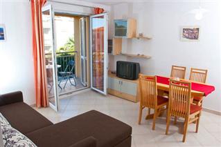 Apartament Raos A4 / 48 m2 / 2. piętro / Nowoczesne apartamenty położone są w centralnej części miejscowości Makarska, w pobliżu morza i wielu restauracji, barów i innych lokali rozrywkowych (w pobliżu "Meteor"). Apartmans składa się z jednej sypialni dwuosobowej + 1 pojedyncza sypialnia + pokój dzienny + kuchnia z jadalnią w salonie + balkon.