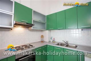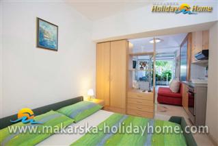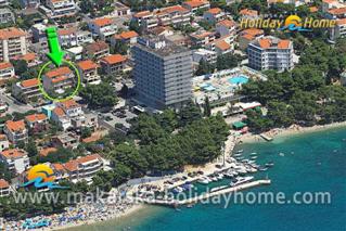 Apartmani Buba / nalaze u zapadnom dijelu Makarske odmah do poznatog hotela "Dalmacija", udaljeni su svega 50 m od od mora i predivne šljunčane plaže pozicija apartmana u u blizini plaže, restorana, trgovina, caffe barova i zabavnih sadržaja čini ih idealnim za goste koji u Makarsku dolaze avionom. Raspolaže s 2 apartmana: Apartman A1 za 4+2 osobe i Apartman A2 za 2+1 osobu.