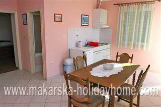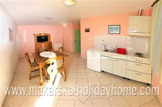 Apartmani Pivac A2 / 55 m2 / 1. kat / nalazi se u zapadnom dijelu Makarske u blizini poznatog hotela "Dalmacija", udaljeni su svega 50 m od od mora i predivne šljunčane plaže, blizini plaže, restorana, trgovina, caffe barova i zabavnih sadržaja čini ih idealnim za goste koji u Makarsku dolaze avionom.Apartman se sastoji od 2 dvokrevetne spavaće sobe + dnevniog boravka + kuhinjom s blagovaonicom u sklopu dnevne sobe i 2 balkona.