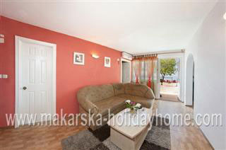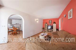 Ferienwohnung IVAN A4 / 120 m2 + balkon / 1. Etage / Es liegt auf einem Hügel über dem zentralen Teil von Makarska, nur 500 m vom Zentrum und 600 m vom schönen Sandstrand. Die Wohnung besteht aus 3 Doppel-Schlafzimmer + Wohnzimmer + Küche im Wohnzimmer + 3 Bäder / WC und einem Balkon mit Meerblick + Parkplatz.