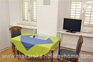 Apartman Ružica A2 / 32 m2 / 3. kat / nalazi se u zapadnom dijelu Makarske u blizini plaže i hotela "Biokovka", udaljen svega 100 metara od pješčane plaže i 800 m od centra grada. Apartman se sastoji od: 1 dvokrevetna spavaća soba, dnevni boravak, kuhinja, blagovaonica, kupaonica, 2 balkona s pogledom na more.