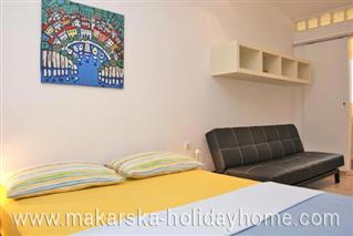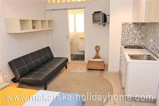 Studio Apartman Jovica / 16 m2 / 1. kat / nalazi se u zapadnom dijelu Makarske u blizini poznatog hotela "Park", udaljeni su svega 80 m od od mora i predivne šljunčane plaže, blizini plaže, restorana, trgovina, caffe barova i zabavnih sadržaja čini ih idealnim za goste koji u Makarsku dolaze avionom. Raspolaže s 2 apartmana; 1 x apartman studio za 2 osobe i 1 x apartman za 2+2 osobe.