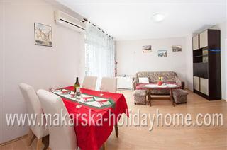 Apartman Širić / 40 m2 / 1. kat / nalazi se u centralnom dijelu Makarske u blizini poznatog hotela "Park", udaljeni su svega 10 m od od mora i predivne šljunčane plaže, blizini plaže, restorana, trgovina, caffe barova i zabavnih sadržaja čini gaidealnim za goste koji u Makarsku dolaze avionom. Apartmani se sastoje od jedne dvokrevetne spavaće sobe + dnevne sobe + kuhinje i blagovaonice + kupaonice / wc + balkon.