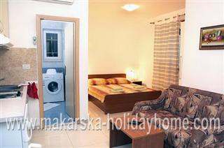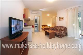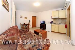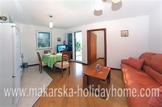located in the western part of the Makarska near the beach and hotel "Biokovka", only 100 meters from the sandy beach and 800 m from the city center. The apartment consists of: 1 double bedroom, living room, kitchen, dining room, bathroom, two balconies overlooking the sea.