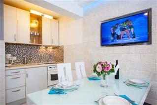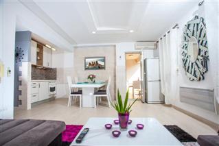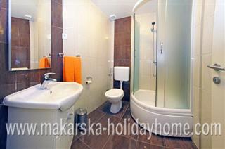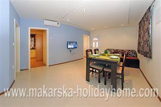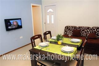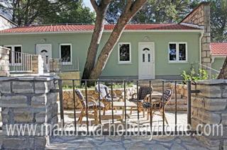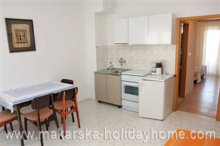 Apartments Jure / 40 m2 + terrace / ground floor / Newly built houses are located in the western part of the town of Makarska located in a pine forest next to the tennis center, beach and the hotel "Riviera". We have 6 holiday homes, each house consists of one apartment and garden. The apartment consists of 2 double bedrooms + living room + open kitchen with dining area in the living room + bathroom / WC and terrace.