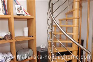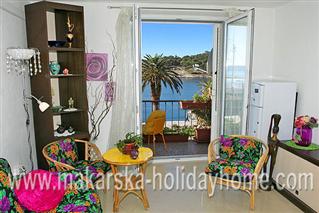 Apartment Jelenka / 45 m2 + balcony / 2. floor / located in the center of Makarska on the waterfront, has one double bedroom, kitchen, living room, bathroom / toilet and a balcony overlooking the sea and islands of Brac and Hvar. The apartment is located just 250 meters from the beautiful sandy beach. It is equipped with all the amenities for a pleasant family holiday.