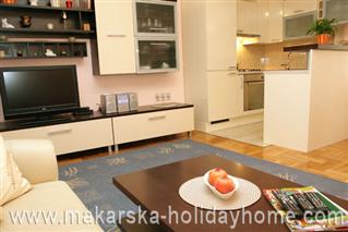 Apartment SUMIĆ A1 / 45 m2 + balcony / 1. floor / located in the center of Makarska, near the sea famous hotel "Meteor", only 30 meters from the beautiful sandy beach and 100 m from the town center are ideal for families with small children and the elderly. The apartment consists of 2 bedrooms, living room, kitchen with dining room in the living room + bathroom / toilet + balcony.