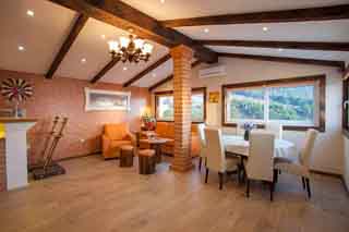 Apartment RUSTIKA A1 / 72 m2 + terrace / Luxuriously furnished duplex apartment for rent is located in the town of Veliko Brdo above Makarska, surrounded by olive groves, away from the noise provides guests a quiet holiday. The apartment consists of two floors, has 2 double bedrooms + living room + hall + kitchen + bathroom / WC and a separate WC and terrace with jacuzzi and beautiful views of the city, sea and islands.
