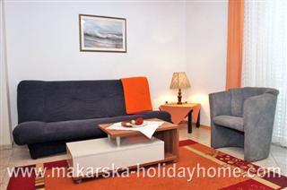 Ferienwohnung Dzajic A3 / 70 m2 + balkon / 1. Etage / Befindet sich im zentralen Teil von Makarska in einer ruhigen Gegend, nur 250 m vom Meer und Sandstrand, nahe dem Strand, Restaurants, Geschäfte, Bars und Freizeiteinrichtungen machen sie ideal für Gäste, die mit dem Flugzeug in Makarska kommen. Die Appartements bestehen aus 2 Doppelzimmer + Wohnzimmer + offene Küche und Esszimmer und Bad / WC und Balkon.