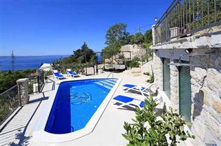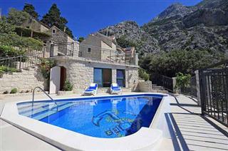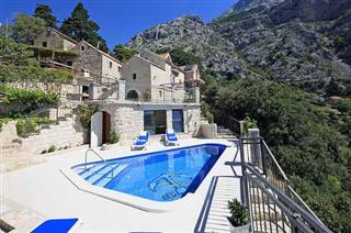 / Newly renovated luxuriously furnished stone house located in the village Makar at the foot of a mountain slope above the town of Makarska. Villa extends to the location of 400 m2 and consists of 3 floors, located within the fenced own garden and has private parking, private pool, jacuzzi, etc. On the ground floor there is a beautiful Dalmatian tavern with a fireplace, a kitchen and a massive wooden table more persons.