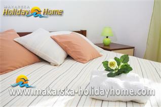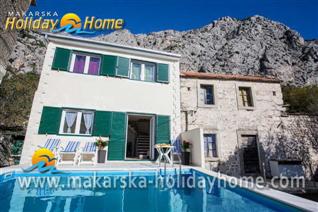 Villa Grube/ 128 m2 / Kuća s bazenom za iznajmljivanje nalazi se u gornjim Tučepima u zaseoku Podpeć, u mirnom zaseoku poviše Tučepa u podnožju planine Biokovo, okružena maslinicima, borovom šumom i mediteranskim biljem. udaljena 4 km od centra i mora i svih gradskih atrakcija, no istovremeno, zahvaljujući svojoj poziciji i predivnom položaju okupanom suncem sa okućnicom, okružena prekrasnom prirodom pruža privatnost i miran odmor.