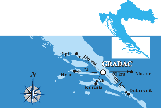By car: AHighway A1 to exit Šetanovac, continue in direction Makarska and Ploče, coastal road E65 or Highway A1 in direction Ploče, exit Ploče, direction Makarska. Detailed information can be found here: http://www.viamichelin.com By bus: On the website www.autobusni-kolodvor.com you will find all information about the timetable of buses that drives in direction of Dubrovnik / Ploče. By train: Railway station Ploče, 12 Km By plane: More information about flights to Split find on web site www.split-airport.hr and for Dubrovnik on the web site www.airport-dubrovnik.hr In the nearby village of Drvenik there is a ferry port to the island of Hvar and Korčula. More information about the timetable can be found at www.jadrolinija.hr